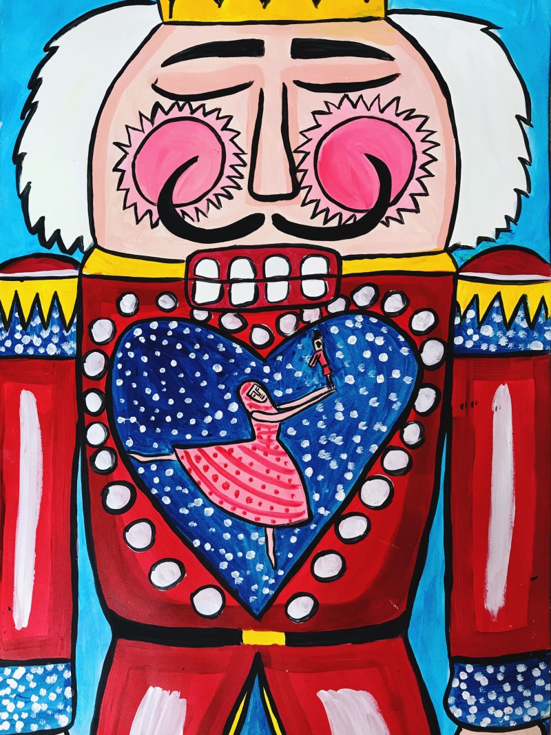 So I wanted to draw a painting about one ballet show and chose the Nutcracker by Tchaikovsky. In Nutcracker’s heart, he always remember the first time when the girl met him, how happy she was. He hopes that he could make her happy and protect her as always.